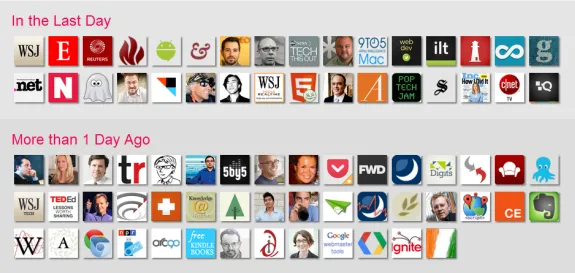 You are comfortable reading news in the river style but it present one major problem. Say you have two friends on Twitter - Mr. Active who sends a new tweet every 5 minutes and Mr. Busy who rarely tweets. Now in the current format, you are most likely to miss all updates of Mr. Busy because his tweets will continuously get pushed down by Mr. Active.